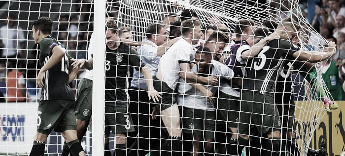 Una vez Inglaterra dio un paso atrás, Alemania encontró en las bandas una fuente constante de profundidad. Con los ingleses basculando constantemente, protegiendo el lado fuerte, Arnold fue cambiando de orientación para las apariciones de Gerhardt y principalmente Toljan, el hombre del partido, el martillo que fue agujereando la resistencia del rival. Sus incorporaciones, excelentes en lectura y toque posterior, habilitaron la presencia de Selke, muy superior en el área a Chambers y Mawson, y cuya ausencia posterior dejó a Alemania sin pegada.